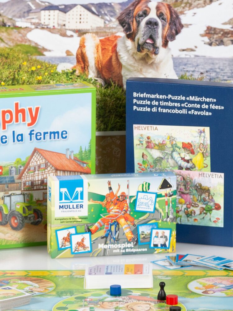 Einerseits haben wir uns in der Sparte «Werbespiele» spezialisiert und produzieren für Firmen, Organisationen und Vereine eine Vielzahl an emotionalen Werbeartikeln. Das reicht von individuell bedruckten Jass- und Spielkarten über originelle Memospiele bis hin zu hochwertigen Puzzles. Dabei beraten wir unsere Kunden vom Spielkonzept über die Gestaltung und Umsetzung bis hin zur Produktion und Auslieferung.